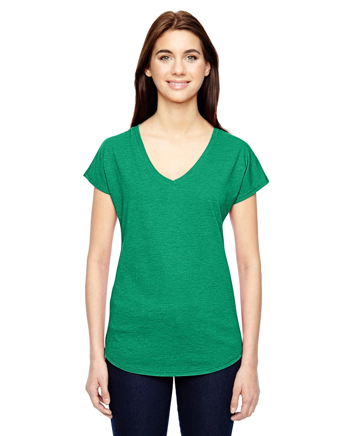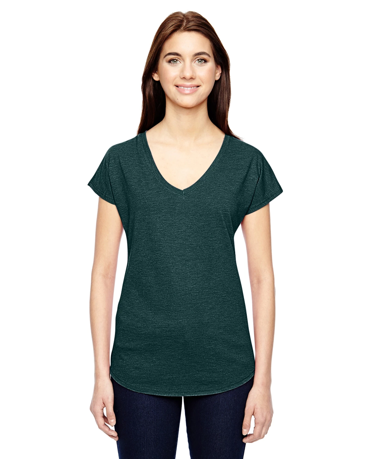 Double-needle Dolman sleeve and curved bottom hem