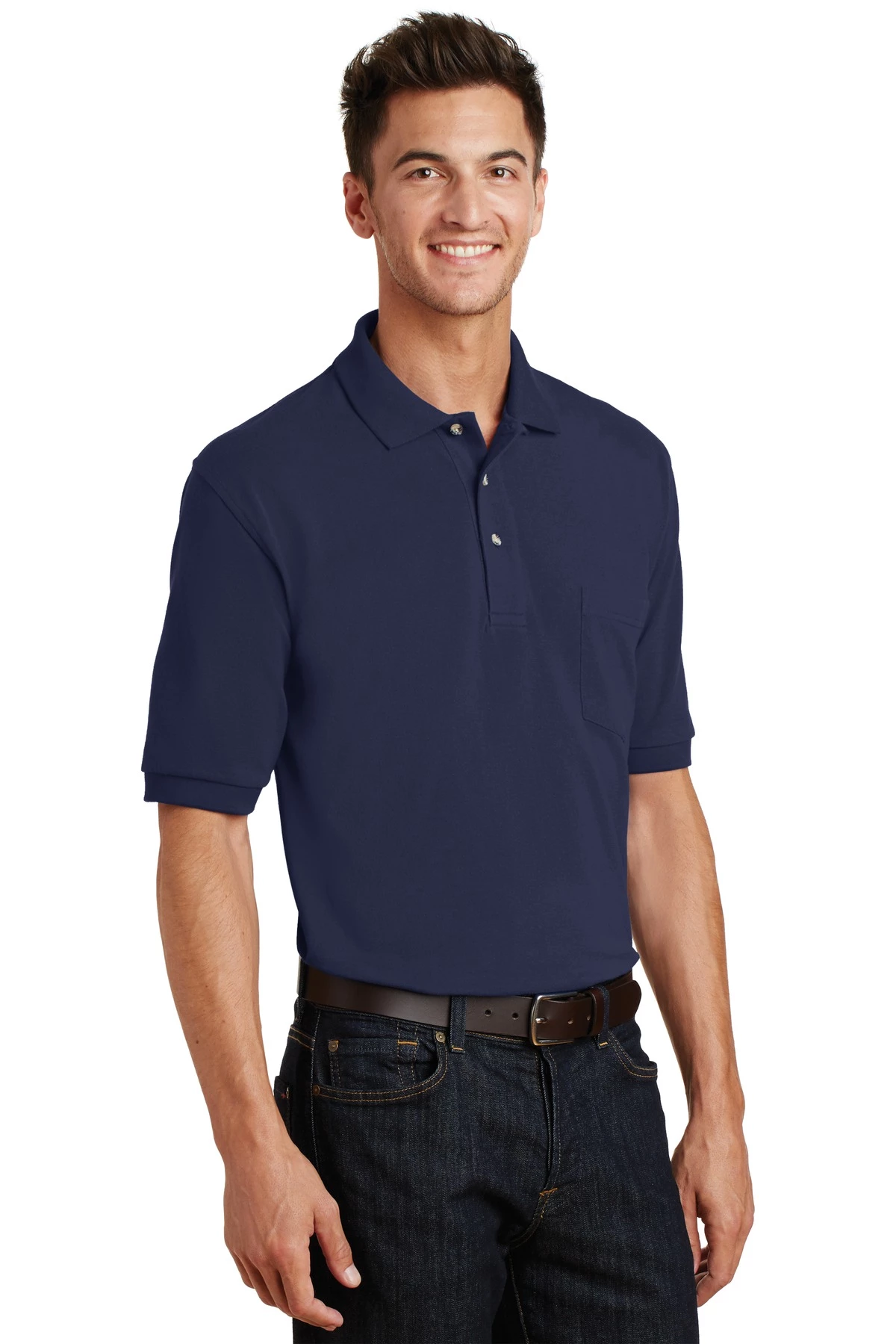 We garment washed our pique knit polo for softness and added a left chest pocket for pens and more.