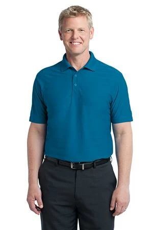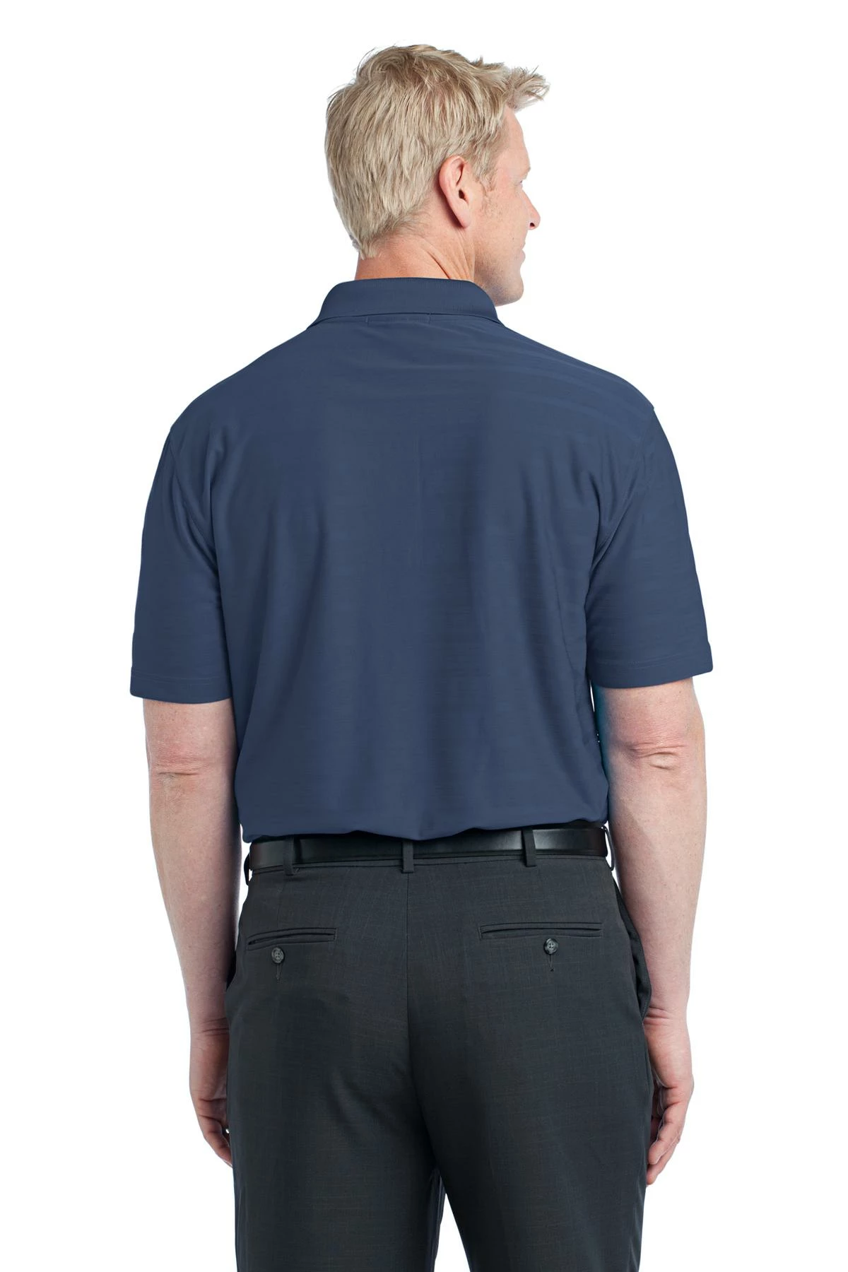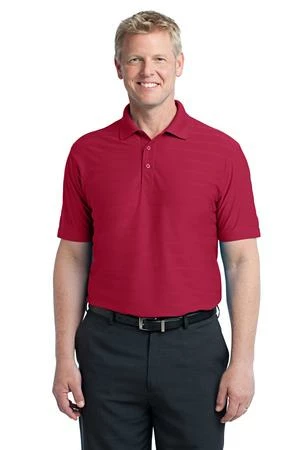 A subtle pique and jersey self-jacquard horizontal texture makes this polo stylish and work-friendly. Exceptional moisture wicking makes it comfortable.