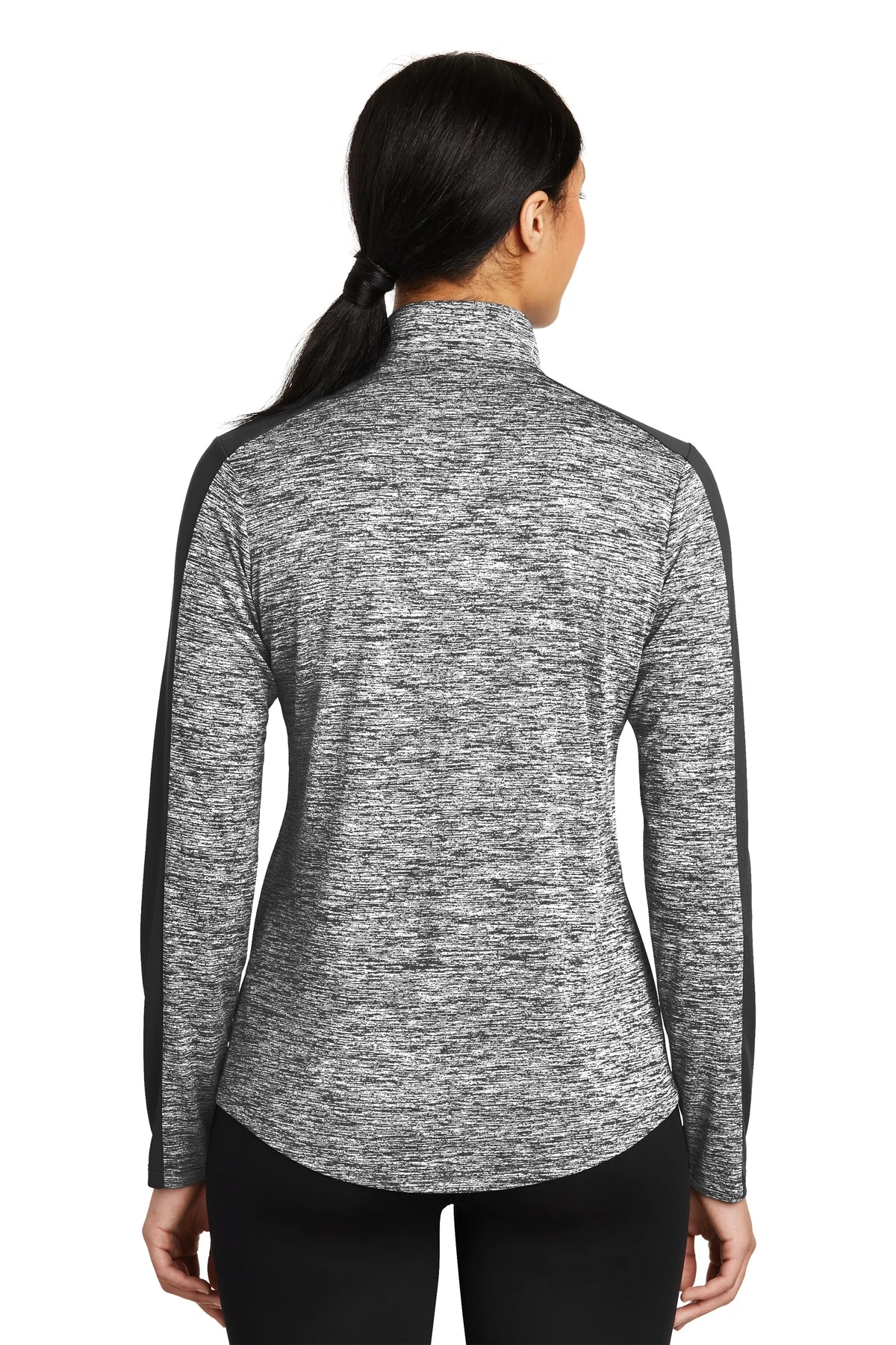 4.1-ounce, 100% polyester yarn-dyed jersey with PosiCharge technology (Electric Heather)