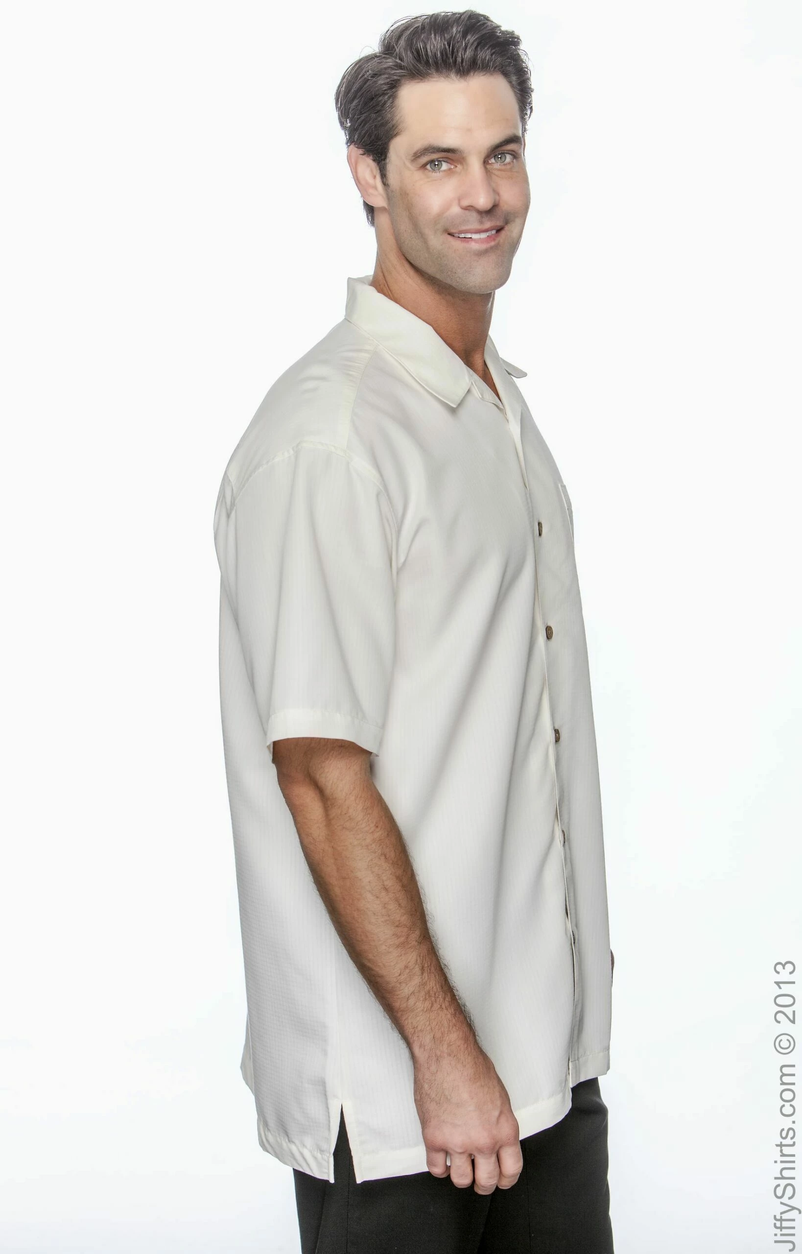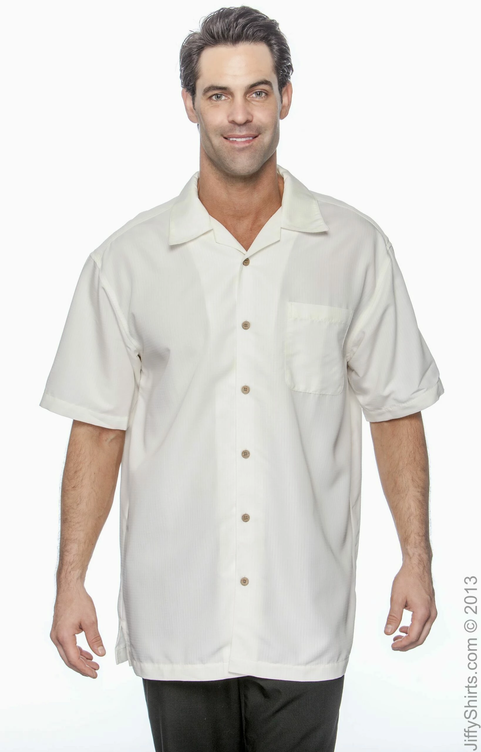 Short-sleeve camp shirt with special shadow weave