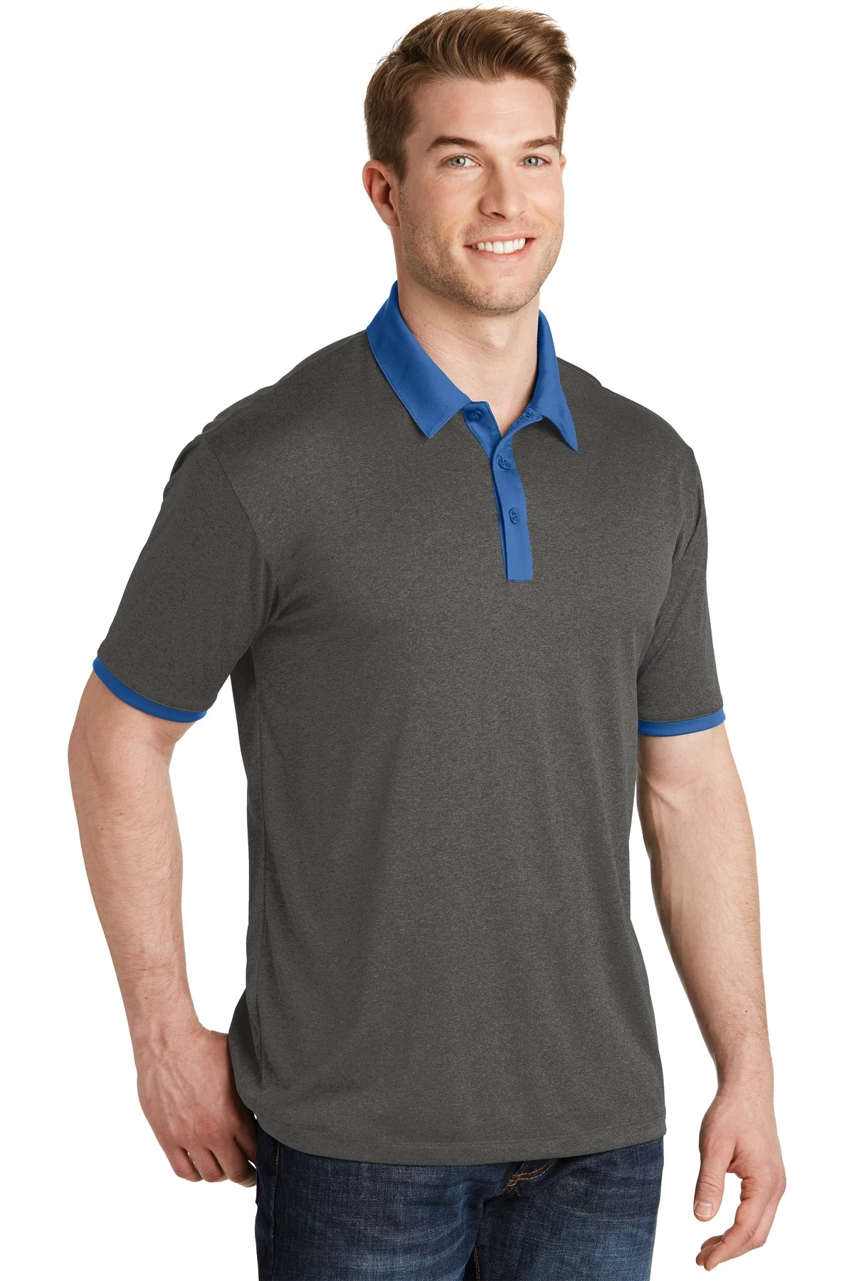 3.8-ounce, 100% polyester interlock collar, placket and cuffs