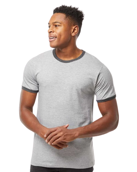 Heather Grey is 90% ring-spun cotton/10% polyester