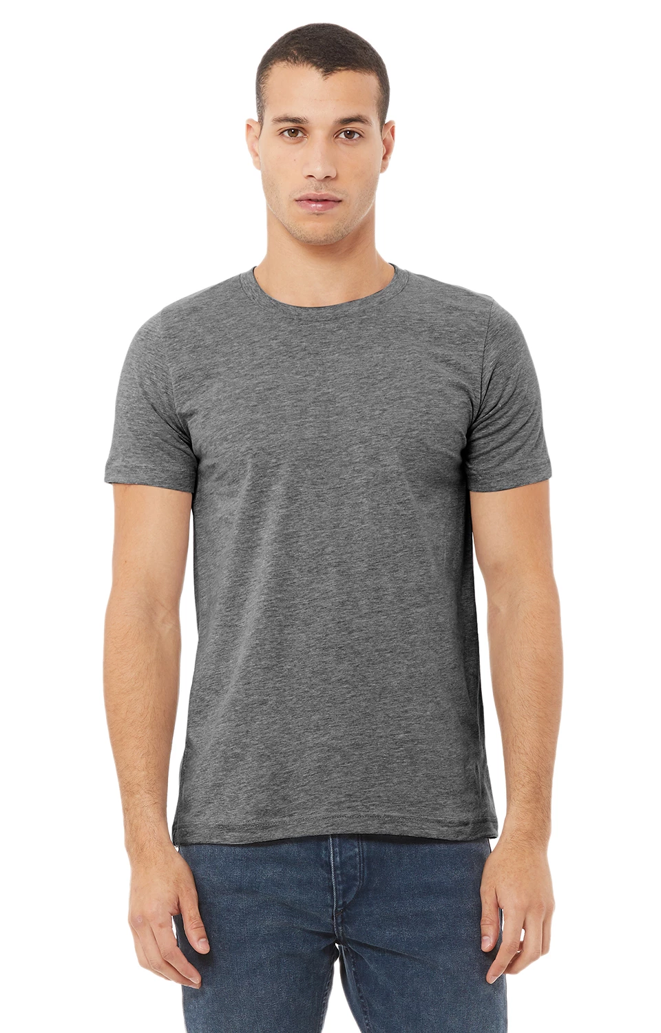 Heather Athletic, Heather Black, and Heather Prism Blue are 90% airlume combed and ring-spun cotton, 10% polyester