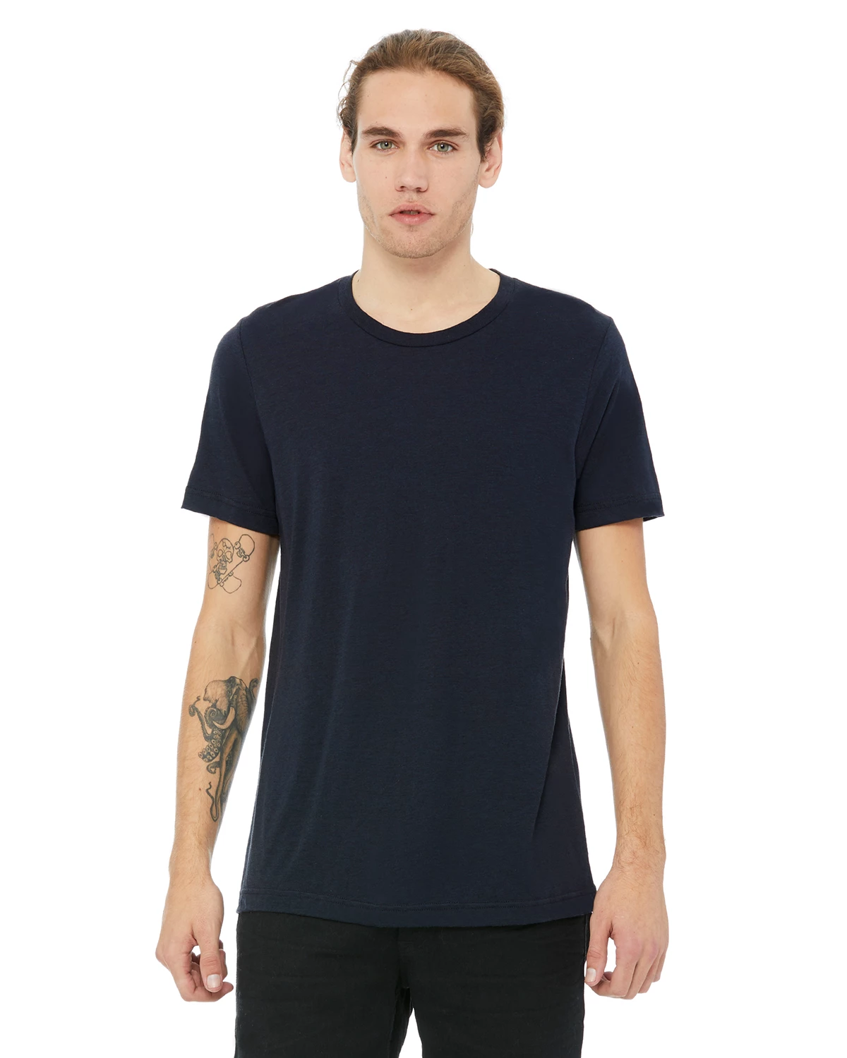 Black Heather Triblend: 70% combed ring-spun cotton, 15% polyester, 15% rayon